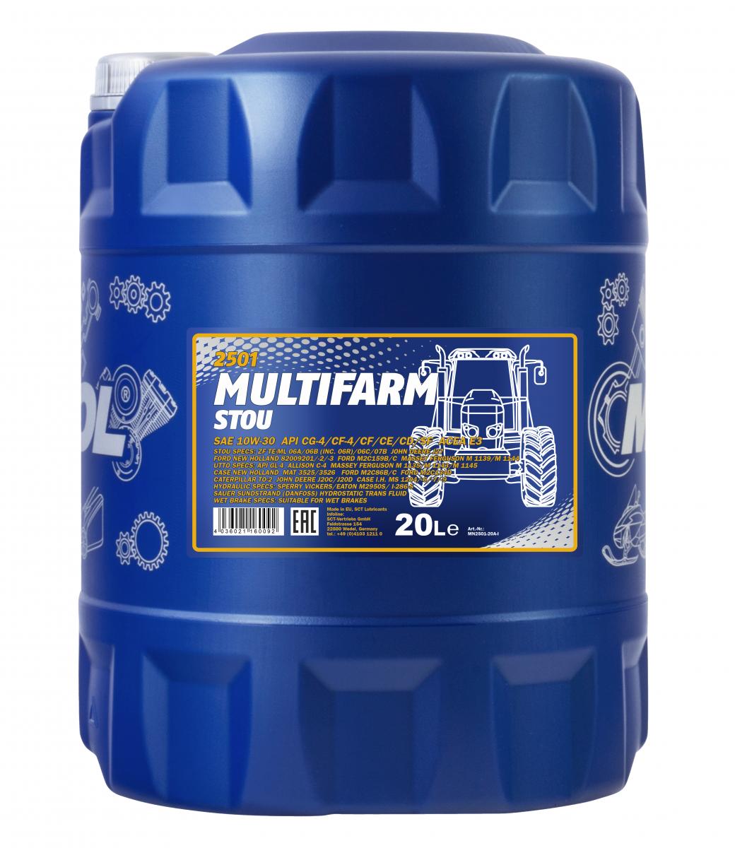 The use of agricultural equipment is characterised by a high dependency of the operation mode and weather conditions, the possibility of a round-the-clock operation, the remoteness from service centres, a wide range of additional attachments and, most commonly, a poor technical competence of the personnel. The use of MANNOL Multifarm STOU 10W-30 eliminates the risk of the equipment issues related to the oil use confusion, when the markings on the containers become illegible due to weather conditions when stored outdoors. The oil use facilitates accounting and storage. In the field, it is enough to take one canister and resolve the issue of adding oil into any piece of equipment in any situation.